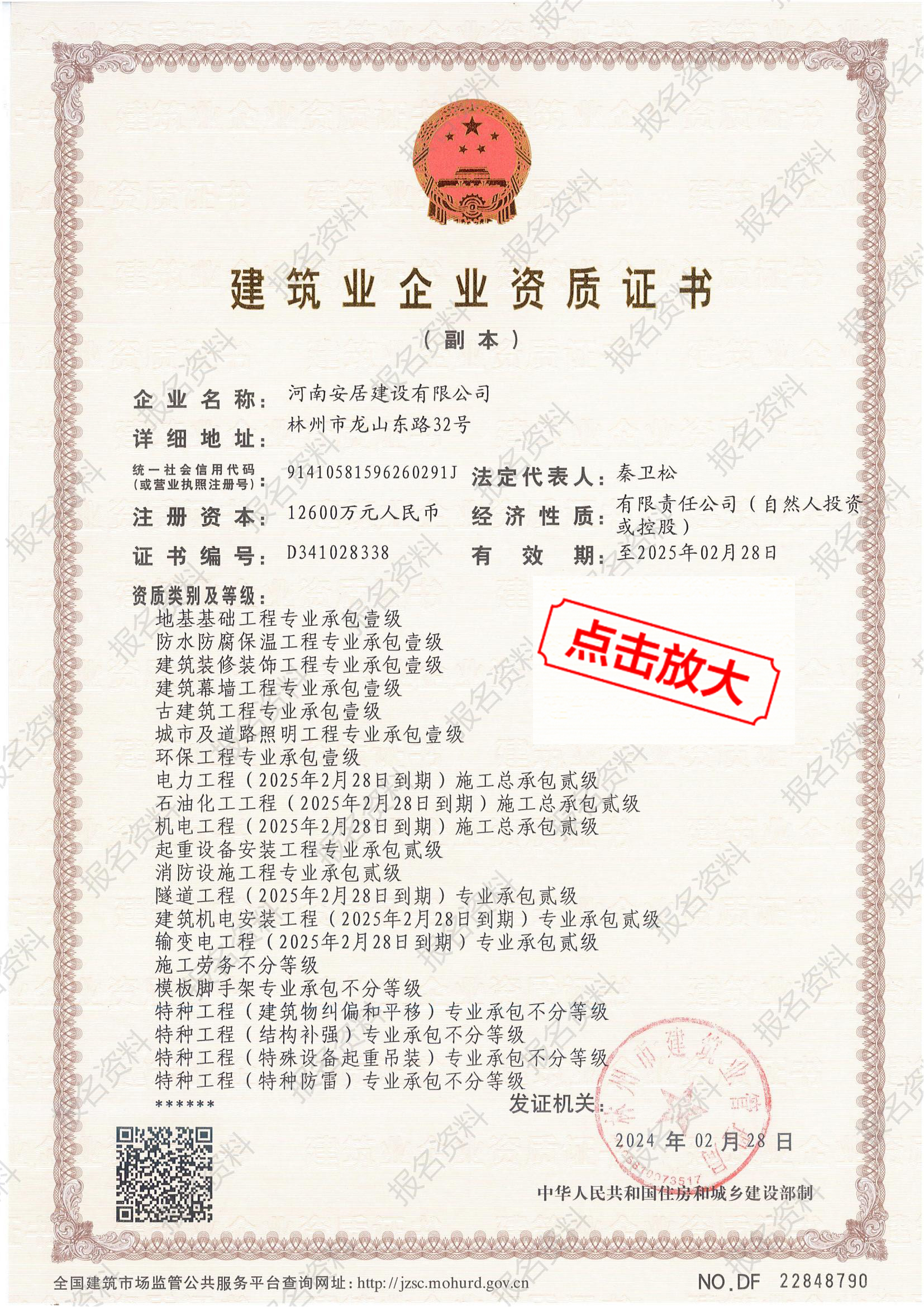滔滔黃河哺育了中華民族拼搏向上的奮斗精神,巍巍太行造就了中原兒女的紅旗渠精神。百萬林州人下太行,鑄就了中國建筑之鄉(xiāng)響當當?shù)囊燮放啤:幽习簿咏ㄔO有限公司從誕生起血液里就流淌著紅色基因,秉承“安得廣夏千萬間,大庇天下寒士俱歡顏”的擔當精神,用鋼筋混凝土筑起了高樓大廈,也用一流品質、家國情懷打造了安居建設的輝煌成績。公司成立于2012年,注冊資金12600萬元,公司成立至今,擁有建筑,市政施工總承包等十項一級資質;其他二級等資質共二十余項。公司秉承質量第一,服務為主,堅持垂直管理,從不設立分公司等分支機構。